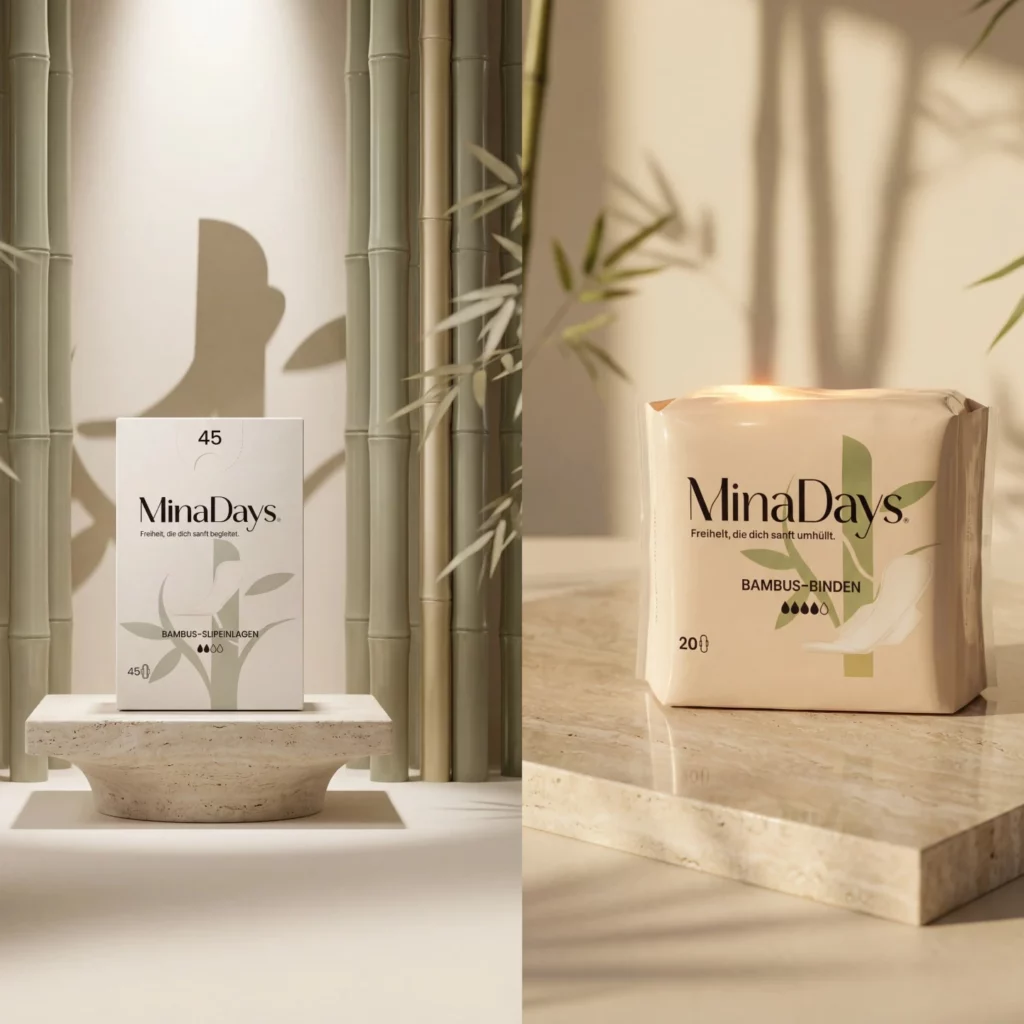 - Die InnovationZukunftsweisende Damenbinden und Slipeinlagen der Marke MinaDays aus einer leistungsstarken Kombination von Baumwolle und schnell nachwachsender Bambusfaser.